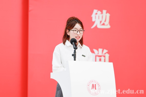 新生代表、数字贸易学院刘芊妤分享了初入校园的所见所感,立志“在经贸探索无限可能,以闪耀青春奔赴未来”。