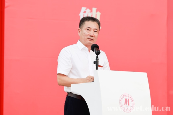 党委书记劳赐铭向每一位加入经贸大家庭的新生表示热烈的欢迎和衷心的祝福,并以《精技笃行砺匠心 让青春在以技报国中绽放光彩》为题给全体新生上了“开学第一课”。他指出,全体新生应肩负起“技能报国、守正创新”的时代使命,首在精进技能、要在知行合一、贵在持之以恒。他对新生提出五点希望:一是以学为基,做善思笃行的求知者,让学习成为青春远航的动力;二是以闯为劲,做敢于创新的开拓者,勇辟新赛道、书写新答卷;三是以韧为骨,做不畏挫折的奋斗者,在“自找苦吃”中砥砺前行;四是以责为魂,做胸怀家国的担当者,将个人理想融入国家发展大局;五是以善为怀,做心胸宽广的豁达者,以健全人格涵养人生格局。