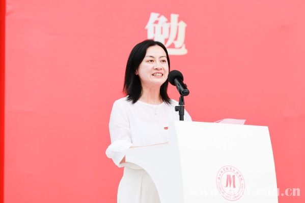 教师代表、创意设计学院陆青霜发言,她聚焦“铭记与传承”“勇毅与创新”“成长与选择”三个关键词,与新生分享了关于学习、成长和蜕变的故事。